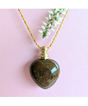 Pendentif Flacon de parfum Cœur en Œil de tigrePendentif Flacon de parfum Cœur en Œil de tigre marron