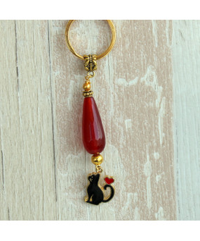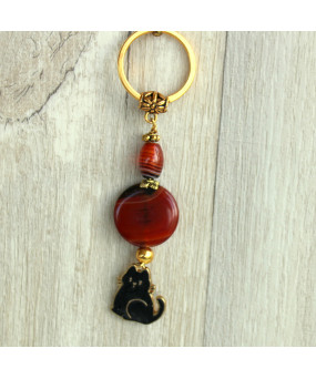 Porte-clefs Chat noirPorte-clefs Chat noir en Agate rouge et jaune, en Ambre et en Jade