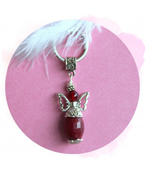 Porte-clefs Ange en Jade et Agate rougePorte-clefs Ange en Jade rouge et Agate rouge