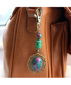 Bijou de sac Mandala en Azurite et Agate noireBijou de sac Mandala en Azurite et Agate noire