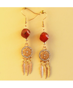 Boucles d'oreilles Capteur de rêve en CornalineBoucles d'oreilles Capteur de rêve en Cornaline